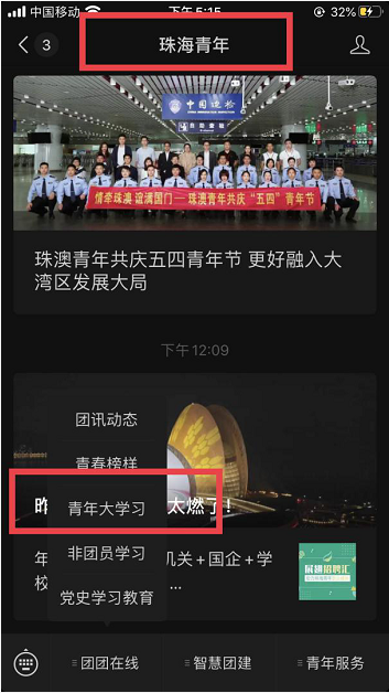 非團員參與學(xué)習(xí),請通過“珠海青年”微信公眾號“團團在線”-“非團員學(xué)習(xí)”進入。