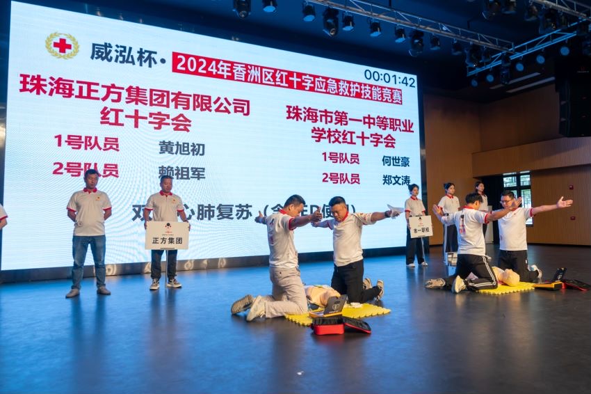 大賽以“關(guān)愛(ài)生命,救在身邊”為主題,考察紅十字救護(hù)員的急救技能,包括成人心肺復(fù)蘇、頭頂出血包扎、前臂骨折固定等。正方集團(tuán)紅十字會(huì)積極組隊(duì),與香洲區(qū)12個(gè)基層紅十字會(huì)及香洲區(qū)紅十字志愿工作者協(xié)會(huì)的60余名參賽隊(duì)員同臺(tái)競(jìng)技。