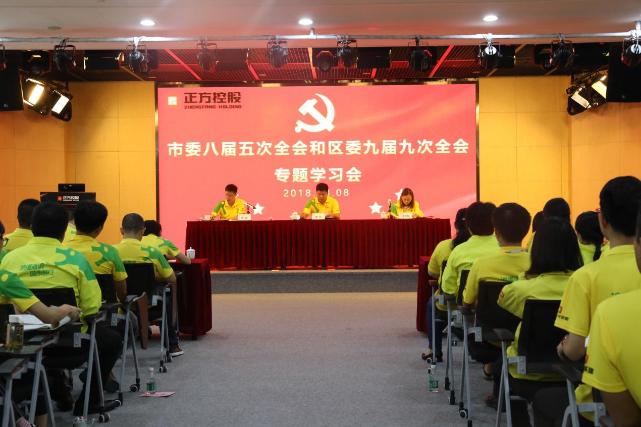 8月8日下午,正方控股黨支部在正方·云創(chuàng)園14樓多功能廳召開支部擴(kuò)大會,專題學(xué)習(xí)市委八屆五次、區(qū)委九屆九次全會精神。公司內(nèi)控部門負(fù)責(zé)人、下屬公司班子成員及支部全體黨員共100余人參加會議。總經(jīng)理唐亮出席會議并講話,副總經(jīng)理陳歆主持會議。