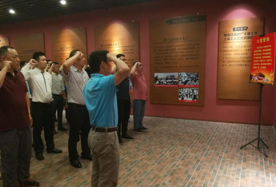 展演結(jié)束后,大家參觀了林偉民與中國早期工人運動史跡陳列館,集體瞻仰了中國工人運動著名領(lǐng)袖林偉明的銅像,深切緬懷革命先烈的豐功偉績。在講解中,大家了解林偉民發(fā)動和領(lǐng)導(dǎo)工人運動的事跡,學(xué)習(xí)林偉民偉大的革命精神和崇高追求。在香洲國土分局黨支部書記陳肇豪的主持下,全體黨員面向鮮紅的黨旗,神情肅穆、整齊站立、舉起右拳,莊嚴(yán)宣誓。