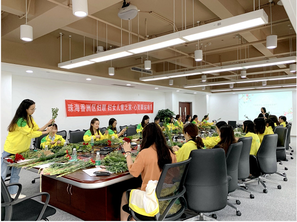 插花藝術(shù)能陶冶人的性情,豐富人的精神生活,增添生活情趣。為充分調(diào)動(dòng)全體職工的工作熱情和斗志,營造良好的文化氛圍,珠海市香洲正方控股有限公司婦女聯(lián)合會(huì)(以下簡稱“香洲正方婦聯(lián)”)攜手珠海市香洲區(qū)婦女聯(lián)合會(huì)、婦女兒童之家心靈驛站,于5月28日下午在正方·云創(chuàng)園開展“以花養(yǎng)心·讀懂您的芳華”花藝小課堂。本次活動(dòng)邀請了花藝技師、亞洲花藝師、香港花會(huì)會(huì)員余芷琪老師為大家講解花藝知識(shí),感受花藝魅力。