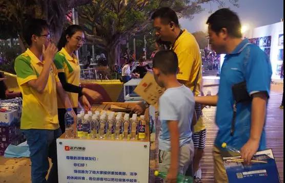 △多位市民游客主動加入“垃圾換水”的活動中