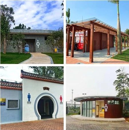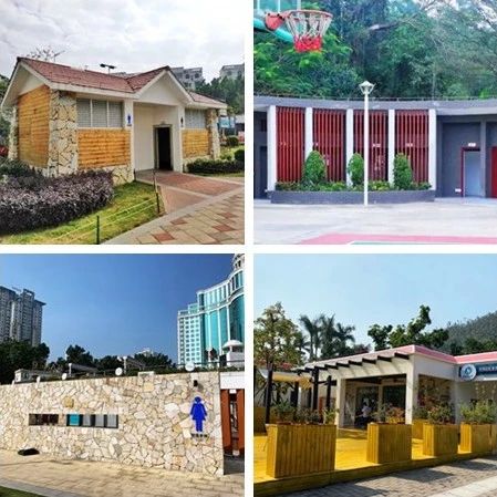 △“美麗公廁”一覽(從左至右分別為:海天驛站公廁、海霞驛站公廁、梅華城市花園公廁、中廣社區(qū)公園公廁)