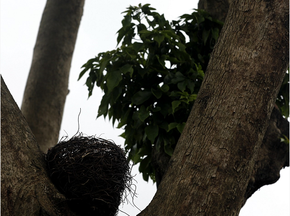 “哇!媽媽快看,樹上有個鳥巢!”采訪過程中,記者突然聽到身邊傳來孩子的聲音?;仡^只見一名男童興奮地朝園區(qū)內(nèi)的一棵香樟樹跑了過去。