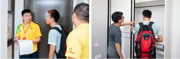 家的品質看在眼里才放心,為保證交給業(yè)主一個滿意的家,在驗房環(huán)節(jié),每戶業(yè)主家庭均有兩位驗房師陪同服務,及時解答和處理業(yè)主問題,保證業(yè)主滿意,讓每一位業(yè)主感受到蔚藍公館的滿滿誠意!