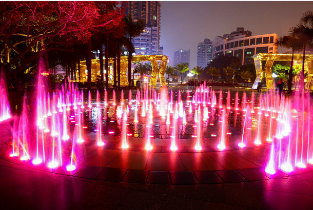 城市客廳音樂噴泉,根據(jù)時(shí)間進(jìn)行燈光設(shè)置