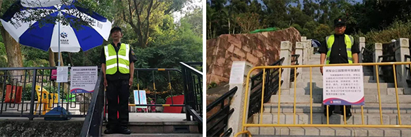 國慶節(jié)一早7時不到,吳常領已經(jīng)來到了將軍山公園,他和其他11名同事,要完成對公園五個入口的封閉,做好火種管理、值班值守以及山地、林地的巡查安全管理工作,直到22時五個入口解封才能撤離。