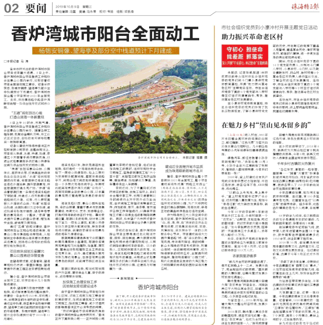 開工建設(shè)香爐灣城市陽臺(tái),被列入2019年珠海十大民生實(shí)事。該項(xiàng)目是珠海市情侶路“一帶九灣”的重要景觀節(jié)點(diǎn),位于情侶中路香爐灣畔,珠海大劇院南側(cè),相鄰珠海漁女及城市客廳,總規(guī)劃用地面積約為35.34萬平方米,總建筑面積約為5.79萬平方米。