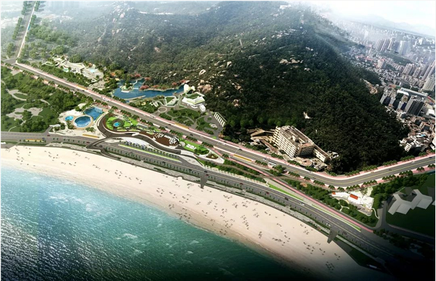 整個(gè)項(xiàng)目建成后,將形成集“兩路三片四臺(tái)”于一體的綜合性開放式城市公園。兩路指海濱路、情侶路;三片為山湖相映的西片區(qū)、觀海休閑的核心區(qū)、親?;?dòng)的東片區(qū);四臺(tái)指山頂浪漫之臺(tái)、山腳休閑之臺(tái)、休閑觀海之臺(tái)、沙灘親水之臺(tái)。