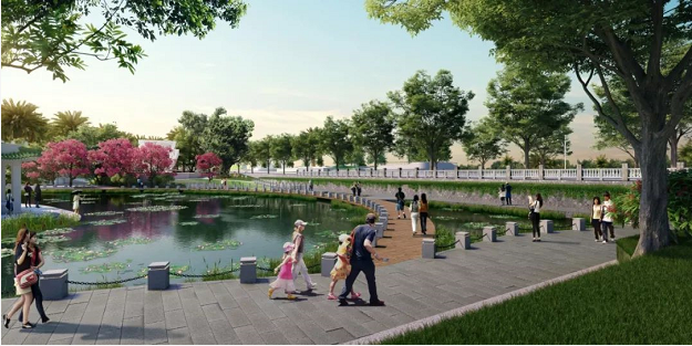翠湖周圍:將建具有文化底蘊(yùn)的嶺南風(fēng)情園林小品建筑,翠湖中將飼養(yǎng)觀賞魚和習(xí)水性植物,營造出動(dòng)物和植物互生互養(yǎng)的生態(tài)觀賞水體。