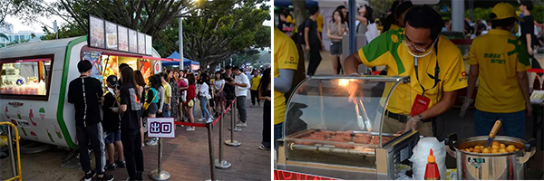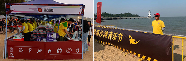 音樂節(jié)現(xiàn)場(chǎng)貼心設(shè)有16個(gè)售賣帳篷,提供飲料、熱食、冰品、沙灘用品等50余種商品?!靶↑S人”全力以赴做好食品安全審核工作,讓夜晚不僅有熱辣的音樂,還有安全可口的美食。
