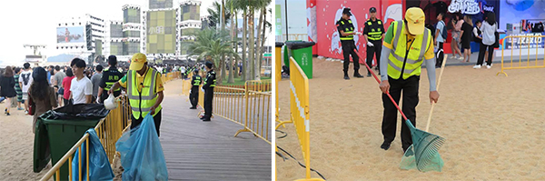 兩天的沙灘音樂節(jié),香洲正方共派出660人次到現(xiàn)場(chǎng)提供救生安全、保潔、零售、地毯式清潔等多項(xiàng)保障服務(wù)。