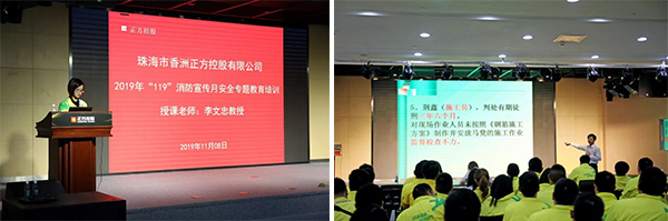 李教授對(duì)香洲正方重點(diǎn)項(xiàng)目進(jìn)行了現(xiàn)場(chǎng)安全勘察,從現(xiàn)場(chǎng)安全隱患、法律法規(guī)、安全生產(chǎn)主體責(zé)任、事故案例分析以及近期安全動(dòng)態(tài)、安全生產(chǎn)形勢(shì)的新變化、新情況等方面進(jìn)行了全面細(xì)致的講解,有效提高了管理人員的火災(zāi)應(yīng)急處置能力、應(yīng)急理論知識(shí)。公司223名管理人員參加培訓(xùn)。