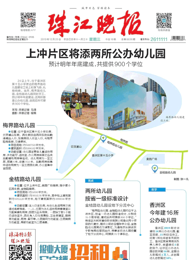 兩所幼兒園均位于上沖片區(qū)由香洲區(qū)教育局主持建設(shè),珠海市香洲正方控股有限公司代建。按照省一級幼兒園標(biāo)準(zhǔn)設(shè)計,各容納15個教學(xué)班,預(yù)計2020年底竣工,爭取2021年投入使用。