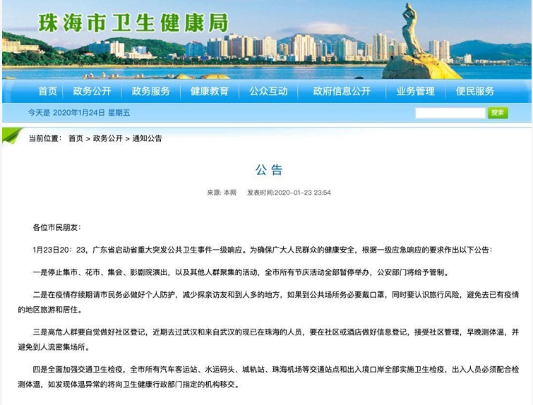 廣東省啟動(dòng)省重大突發(fā)公共衛(wèi)生事件一級響應(yīng)。