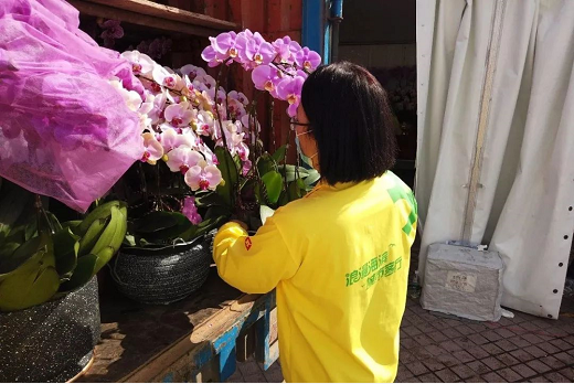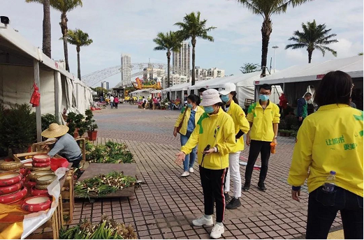 香洲正方撤場支援人員到場集合,花市撤場工作井然有序展開。在花市每個(gè)出入口,均有工作人員為進(jìn)出的撤場人員進(jìn)行體溫檢測,并提供口罩。