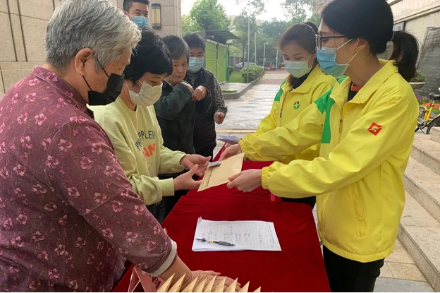 活動期間,正方城投工作人員先后在三個小區(qū)設(shè)置口罩領(lǐng)取點,業(yè)主根據(jù)物業(yè)通知,在指定時間段憑有效證件前往登記,即可領(lǐng)取裝有10個口罩的“暖心包”?!斑€有這么好的福利,感謝感謝!”“正愁不夠用呢,口罩來得太及時了?!闭匠峭兜挠眯姆?wù),讓業(yè)主們喜出望外,口罩拿在手里,溫情暖在心里。