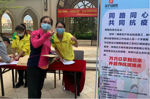 為守護正方業(yè)主家園安康,幫助業(yè)主緩解口罩緊缺問題,正方城投嚴選采購7600只口罩,在3月20至22日期間舉辦“同路同心,共抗冠疫”業(yè)主關(guān)懷活動,免費贈送給正方·盛和苑、正方·世和苑和正方·康和苑(蔚藍公館)的業(yè)主。每戶業(yè)主可領(lǐng)取10只口罩,為生活生產(chǎn)做好防護。