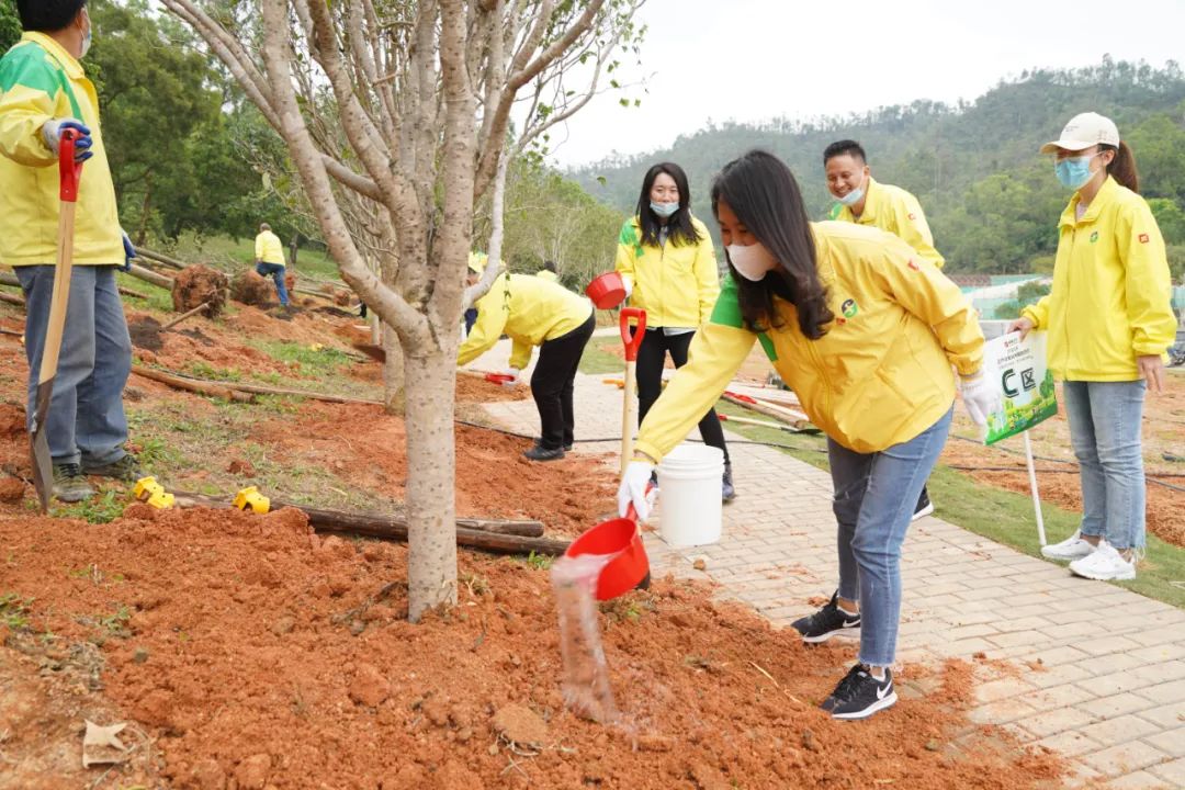 在疫情防控的特殊時(shí)期,參與人員在進(jìn)入公園時(shí)均測(cè)量體溫、掃描粵康碼登記信息,并按照防疫要求佩戴口罩、手套,之后分成兩三人的小組開展植樹活動(dòng),做好植樹防疫兩不誤。
