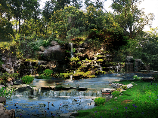假山跌水效果圖