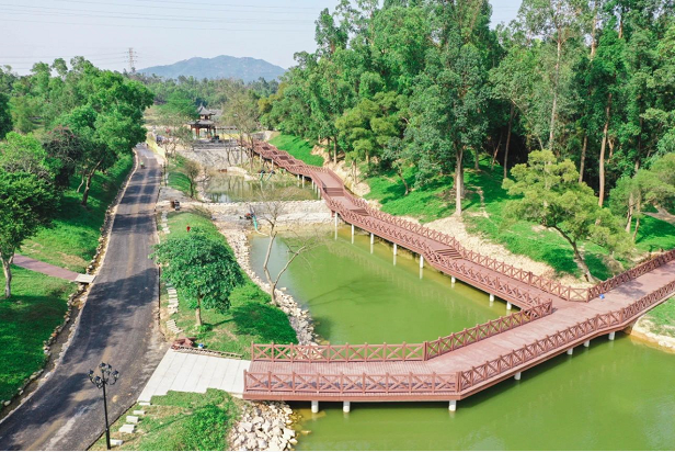 為實(shí)現(xiàn)這一設(shè)計(jì)思路,在市、區(qū)領(lǐng)導(dǎo)的關(guān)心指導(dǎo)下,香洲正方反復(fù)現(xiàn)場(chǎng)實(shí)地踏勘,通過最大限度地保留原有的山、水、草木等生態(tài)特征,不斷發(fā)掘原地貌特征中的景觀優(yōu)勢(shì),結(jié)合傳統(tǒng)嶺南建筑風(fēng)格,對(duì)亭、臺(tái)、樓、榭、橋、廊、假山等景觀節(jié)點(diǎn)細(xì)心雕琢,令傳統(tǒng)建筑元素與現(xiàn)代舒適性需求充分結(jié)合,最終確定了總體規(guī)劃方案。