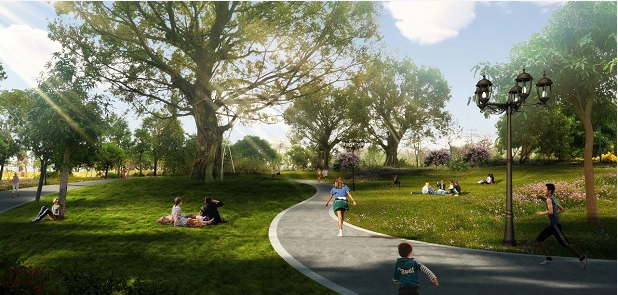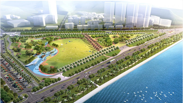 遠遠望去一片碧綠,宛如身處在森林之中,靜守美好。目前,木棉大道和紫薇大道路面硬化已完成,兩側(cè)路燈都已安裝完畢;木棉、大王椰子、欒樹、樟樹、紅花紫荊等賞花觀景帶已現(xiàn)雛形;停車場已完成地面平整。