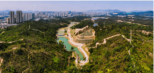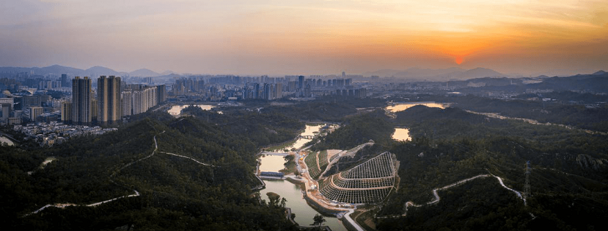 公園定位為嶺南園林建筑山水園,遵循“雖由人作,宛自天成”的主題,橋曲欄回、亭臺樓榭、貽水石橋、湖渡輝映,展現(xiàn)清雅秀麗的南國風(fēng)光,打造一個與生態(tài)風(fēng)貌相協(xié)調(diào),兼顧功能性、景觀性和藝術(shù)性的國際化高水平低碳休閑城市公園。