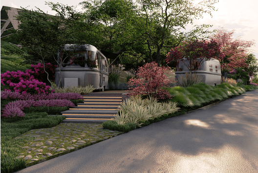 房車露營文化展示體驗區(qū),位于驛站東北側(cè),包含2臺8米房車及1個配套集裝箱。有獨立院落,可以布設(shè)營地生日party、周年慶活動等等,體驗極具魅力的營地文化。
