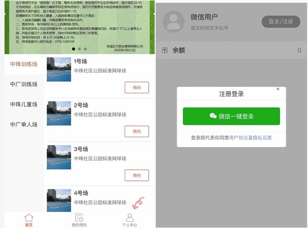 掃碼之后進(jìn)入小程序主頁(yè),點(diǎn)擊右下角的【個(gè)人中心】,進(jìn)行用戶注冊(cè);之前在h5版本系統(tǒng)中已經(jīng)注冊(cè)過的用戶,需要同步預(yù)約記錄/資產(chǎn),預(yù)約系統(tǒng)以手機(jī)號(hào)為用戶識(shí)別;之前注冊(cè)賬號(hào)與微信綁定手機(jī)號(hào)一致的,點(diǎn)擊【微信一鍵登錄】,按照指引授權(quán)即可完成登錄;如不一致,需點(diǎn)擊【手機(jī)號(hào)登錄】,輸入之前注冊(cè)時(shí)使用的手機(jī)號(hào),進(jìn)行登錄;未注冊(cè)過的新用戶,使用【微信一鍵登錄】即可。