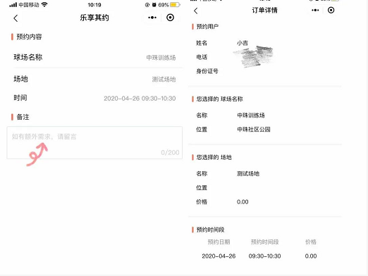 點(diǎn)擊【選擇確認(rèn)】之后,可以填寫想要備注的信息;確認(rèn)之后,進(jìn)入訂單詳情,會(huì)有【預(yù)定編號(hào)】、【預(yù)定時(shí)間段】等信息;返回小程序主頁(yè)面,點(diǎn)擊【我的預(yù)約】可隨時(shí)查詢訂單信息。