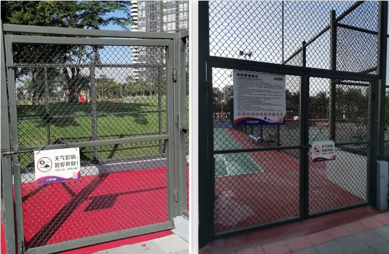 社區(qū)公園懸掛“三防”公告牌,暫停使用