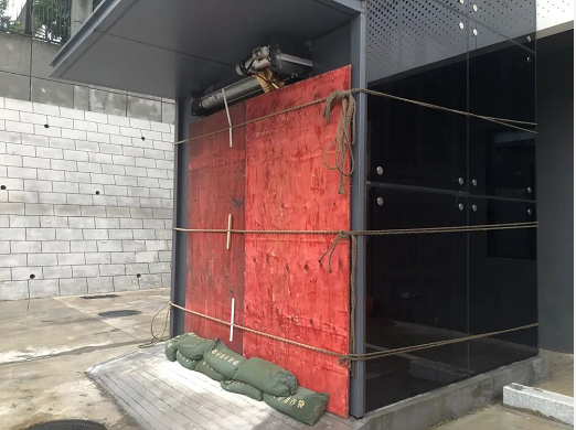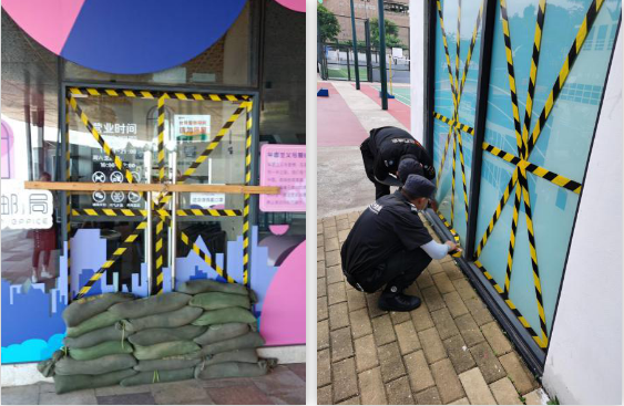 加固門店門窗,放置防汛沙袋固定