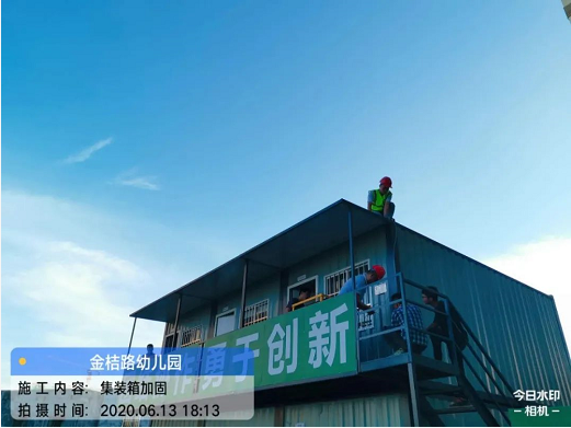 施工用電全部斷開,一級(jí)箱加固,二三級(jí)箱收納放倒,集裝箱防風(fēng)纜繩加固