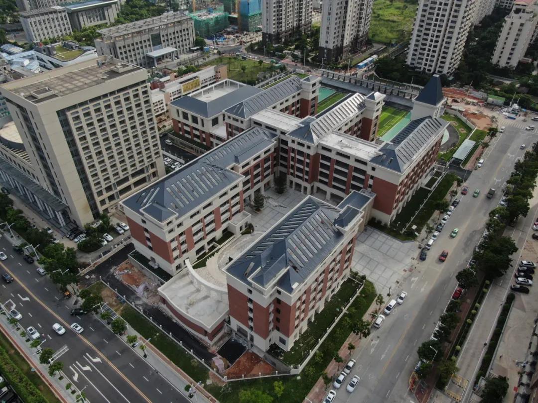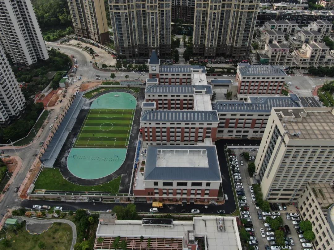 校園設(shè)計將嶺南文化元素融入工程當(dāng)中,建有行政樓、文體樓、綜合樓、3棟教學(xué)樓、250米塑膠跑道運(yùn)動場、籃球場、室外羅馬劇場、能容納近600人的報告廳、大小階梯室,并配備有舞蹈室、音樂室、美術(shù)室、理化生實驗室、心理室、計算機(jī)室、圖書閱覽室等各類功能室,是一所功能齊全的現(xiàn)代化智慧校園。