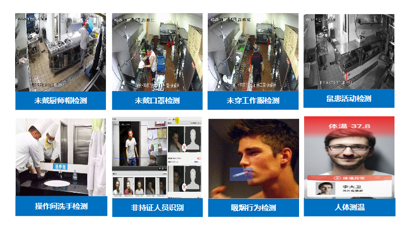 24小時監(jiān)控全覆蓋,通過紅外高清攝像頭的“工作帽識別”“口罩識別”“夜間老鼠識別”“吸煙/使用手機檢測”,實時抓拍生產(chǎn)人員不規(guī)范操作行為,準確及時地對違章行為進行處置。