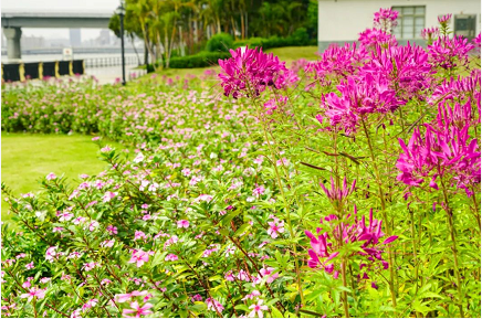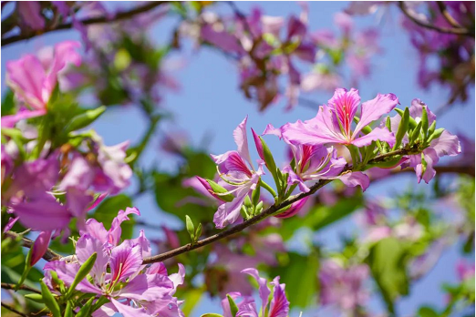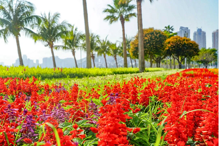 在輕柔的海風(fēng)中,海天公園仿佛一幅絢爛的油畫(huà),木棉吐出了花蕊,宮粉紫荊露出了紅粉,茶花、勒杜鵑競(jìng)相盛放,黃花風(fēng)鈴木花團(tuán)錦簇,嬌艷如繁星般點(diǎn)綴整個(gè)公園。