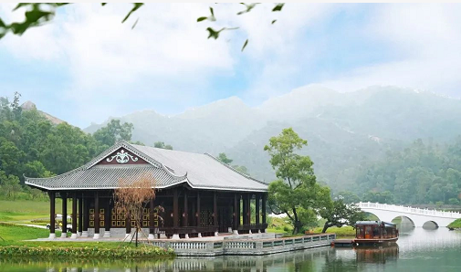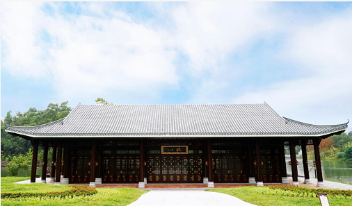 “洗心”水榭采用了傳統(tǒng)歇山頂構(gòu)造,坐落于香山湖公園二期中最為開(kāi)闊的水面之上,與六角重檐亭“眾樂(lè)亭”形成對(duì)景。置身其中,在“洗心”水榭觀望山湖景色,微風(fēng)輕撫,洗去疲憊,靜下心來(lái),在澄澈空靈的氛圍下,精神飽滿地賞嶺南之風(fēng)情,游山湖之樂(lè)趣。