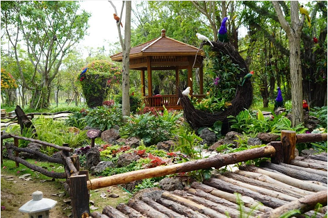 作品描述:該作品以輪胎、油桶、臺(tái)風(fēng)枯枝、廢棄PVC水管、修剪剩下的竹子等破舊廢料為主要材料,通過(guò)刷漆加工彩繪,再用時(shí)花、植物點(diǎn)綴,營(yíng)造出特色主題小景,不僅可以美化景觀,還起到了科普垃圾分類(lèi),引導(dǎo)市民提高環(huán)保意識(shí)的作用。