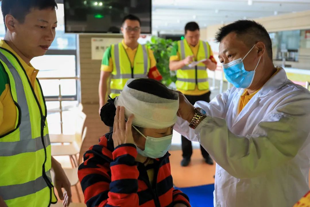 11時(shí)09分,演練準(zhǔn)時(shí)開始,演練現(xiàn)場(chǎng)由安全專員點(diǎn)燃煙霧彈觸發(fā)煙感報(bào)警器報(bào)警。監(jiān)控中心接到報(bào)警信號(hào)后立即安排巡邏崗到報(bào)警地點(diǎn)查看,確認(rèn)后向監(jiān)控中心匯報(bào),隨后進(jìn)行受傷人員緊急救治演練。