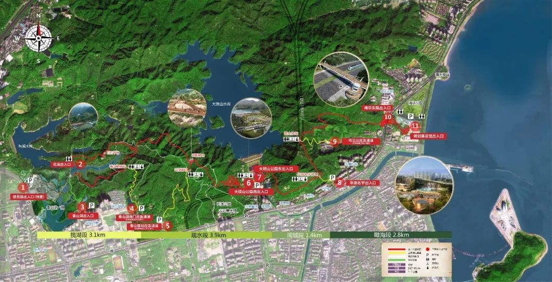項目于2020年啟動建設(shè),目前已全線貫通并對外開放。項目依托原有山、水、田、園等獨(dú)特的生態(tài)風(fēng)貌和風(fēng)景名勝區(qū)、歷史古跡等豐富的特色資源,巧妙運(yùn)用地形,打造山海間的生態(tài)人文走廊,可以充分感受珠?!吧胶O鄵?、陸島相望、城田相映、云天相依”的城市風(fēng)貌。
