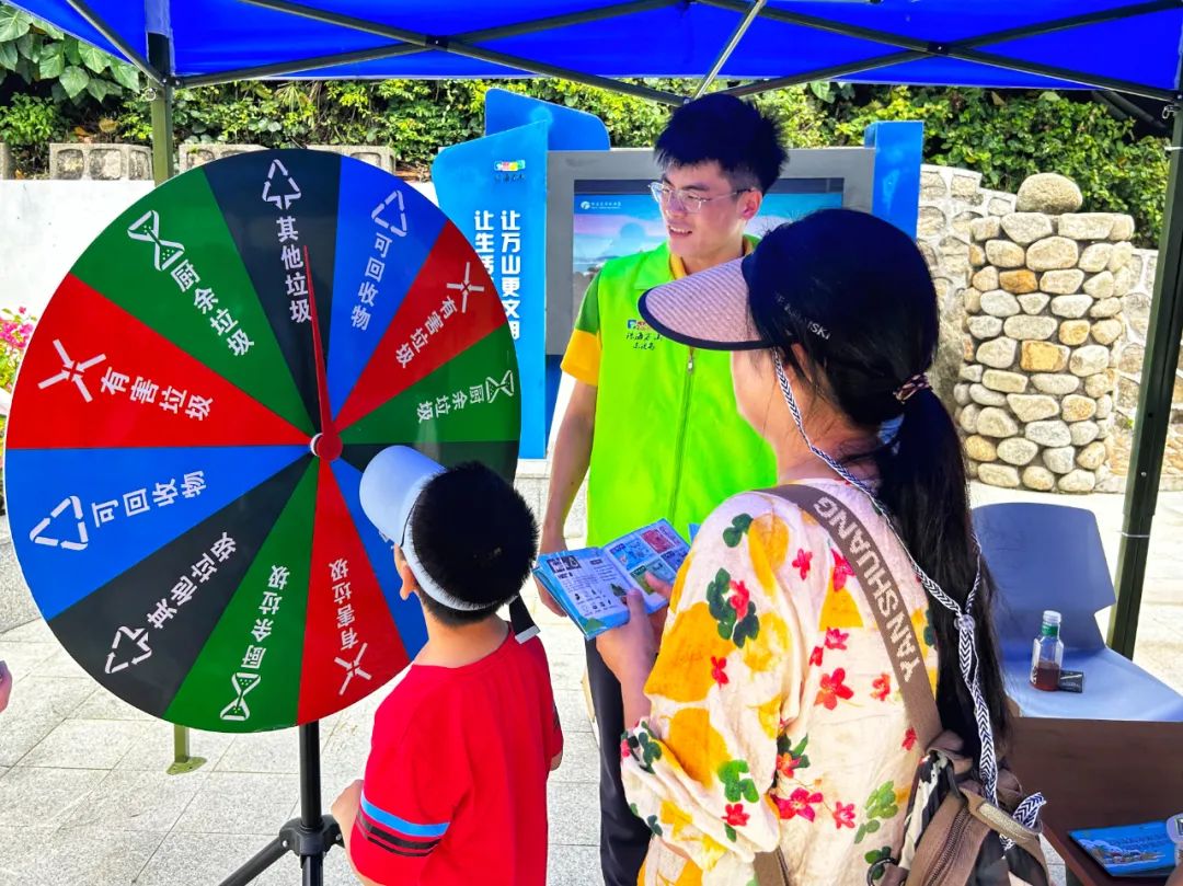 “可回收物應(yīng)投入什么顏色垃圾桶、舊衣服屬于什么垃圾、廢舊熒光燈管屬于什么垃圾?”活動(dòng)現(xiàn)場(chǎng),居民、游客積極參與知識(shí)競(jìng)答、轉(zhuǎn)盤(pán)互動(dòng)等小游戲,活動(dòng)志愿者發(fā)放垃圾分類(lèi)宣傳手冊(cè),幫助大家掌握常見(jiàn)的生活垃圾分類(lèi)要領(lǐng),倡導(dǎo)從自身做起,樹(shù)立綠色文明低碳生活理念。理論與實(shí)踐相結(jié)合的方式,調(diào)動(dòng)起大家的學(xué)習(xí)熱情,令垃圾分類(lèi)知識(shí)深入人心。據(jù)悉,活動(dòng)當(dāng)天共發(fā)放垃圾分類(lèi)宣傳手冊(cè)200本,參加互動(dòng)游戲的居民、游客還收到定制版垃圾分類(lèi)帆布包、鑰匙扣等小禮品。