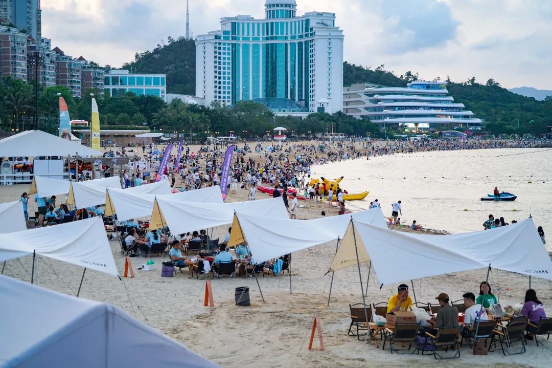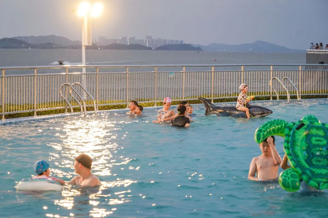 摩爾紋水寨,蘑菇傘、麻花、向陽花、花果樹以及長頸鹿、青蛙、鯨魚等十幾種造型各異、充滿童真童趣的戲水設(shè)備,10余條滑梯滑道,幾十處噴水、疊水等設(shè)施,搭配夜晚泛光照明系統(tǒng)。在碧海藍(lán)天下,打造無敵海景水上親子樂園,解鎖水上全新玩法。熱浪灣·水樂園將成為情侶路又一個遛娃打卡點(diǎn)。