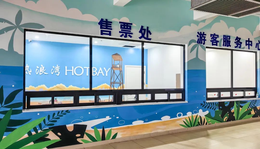 海洋風(fēng)景主題墻繪的游客服務(wù)中心,配有冷熱水沖涼房、自助售票區(qū)域和寄存物品區(qū)域,并對周邊區(qū)域景觀進(jìn)一步提升,打造出獨(dú)具特色的濱海特色城市園林景觀。