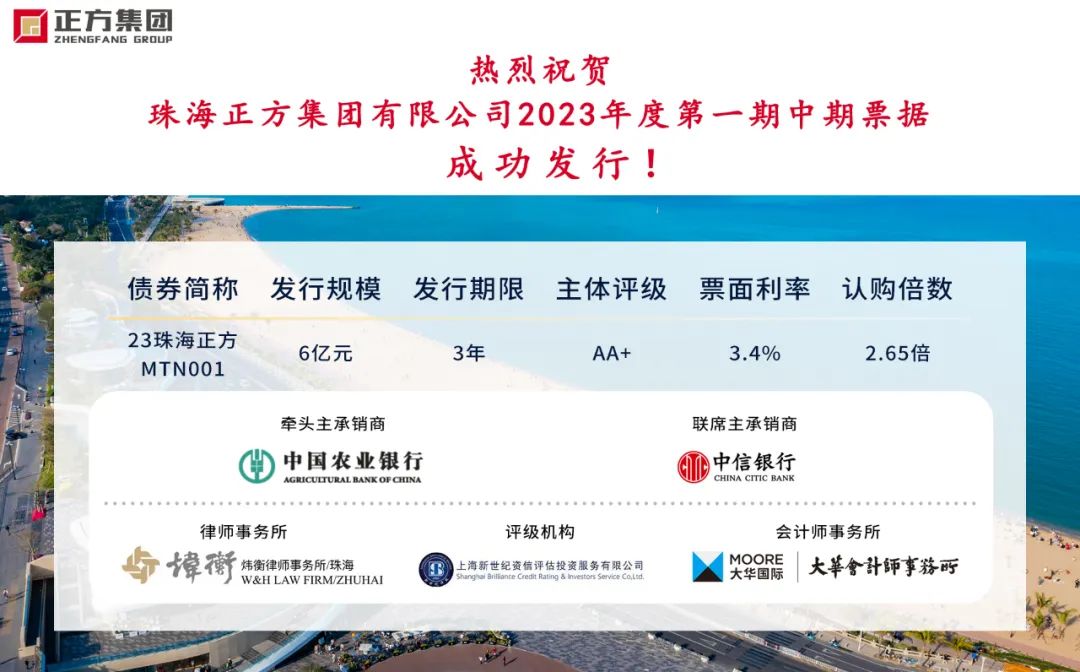 作為香洲區(qū)龍頭國有企業(yè),正方集團在業(yè)務(wù)板塊快速發(fā)展的同時,持續(xù)深化融資體系建設(shè)。本次債券的成功發(fā)行,為集團整體融資成本錨定了新的市場標(biāo)準(zhǔn),拓展了新的融資渠道,進一步邁向更廣闊的資本市場。