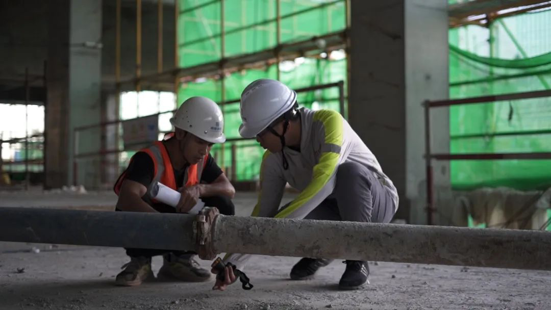 在一次項目巡檢中,黃之龍發(fā)現(xiàn)在使用地泵將混凝土輸送到施工樓層時,由于輸送距離較遠,泵管和樓板之間鋪設(shè)了許多小塊木模板作為墊片。黃之龍敏銳地發(fā)現(xiàn)這樣的處理方式無法起到有效的固定作用,一旦泵送壓力過大,泵管可能發(fā)生位移引起爆管,造成成砼料飛濺,甚至砸傷工人的事故。