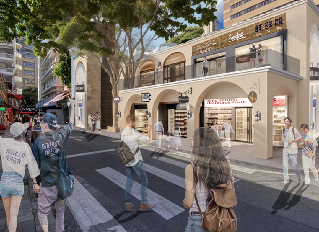 通過對片區(qū)不同位置、節(jié)點的劃分,進行街區(qū)分級改造。從具有葡澳特色風格的牌坊作為形象展示窗口吸引客流進入,到臻選樓棟設(shè)計師打造一樓一景,引導(dǎo)人流進入片區(qū)的核心。香洲埠將用借助歷史和現(xiàn)代的碰撞,吸引更多的新生代人群,延續(xù)百年商埠的煙火氣。