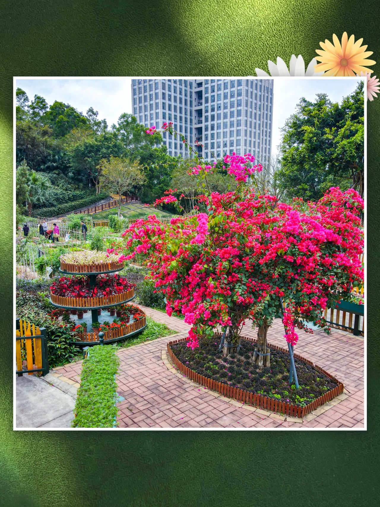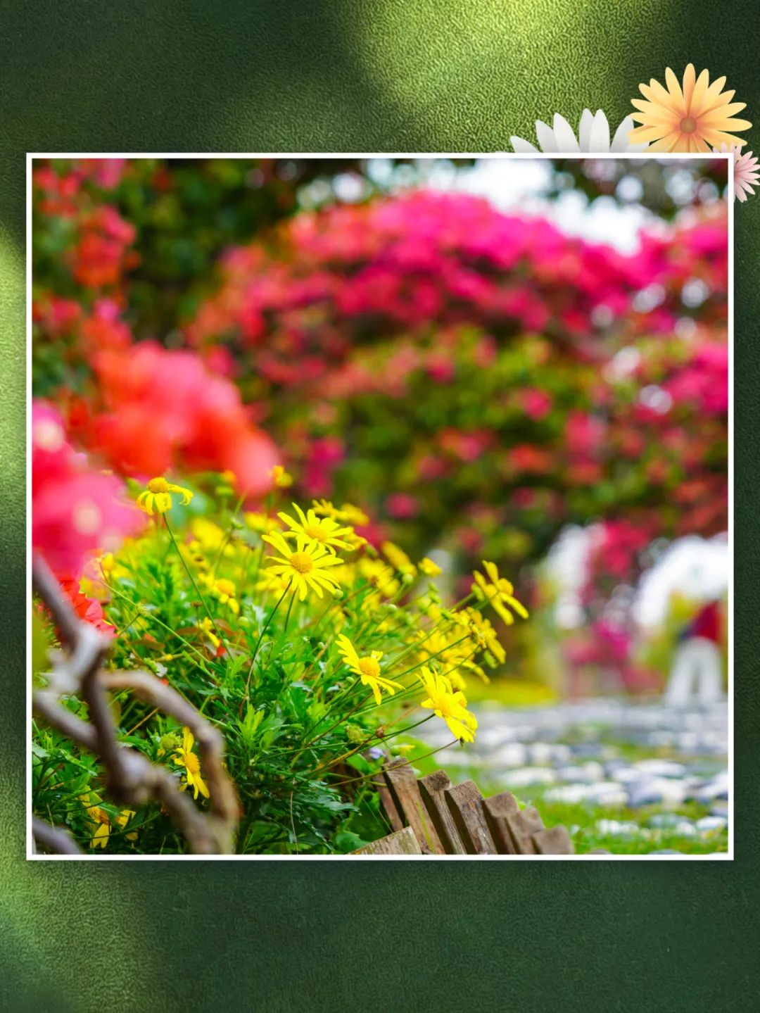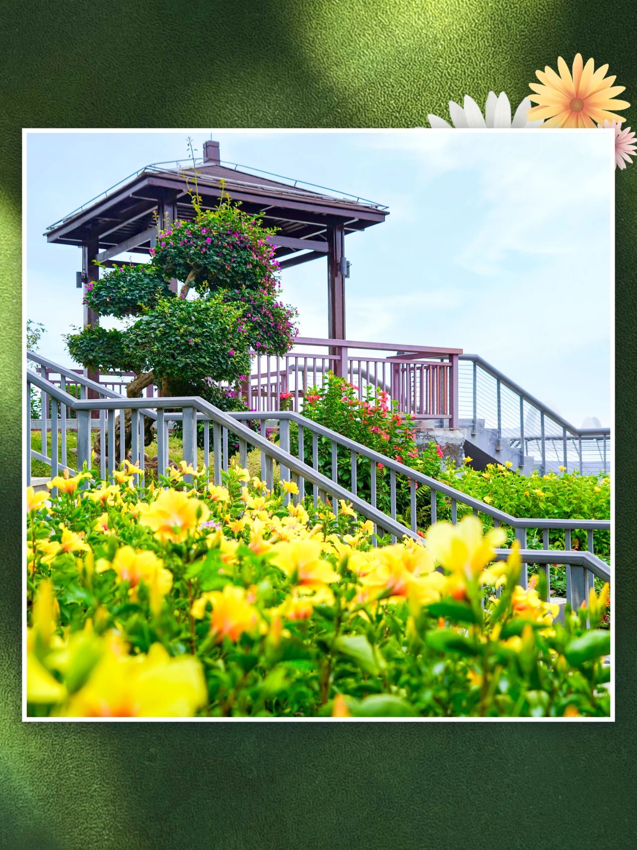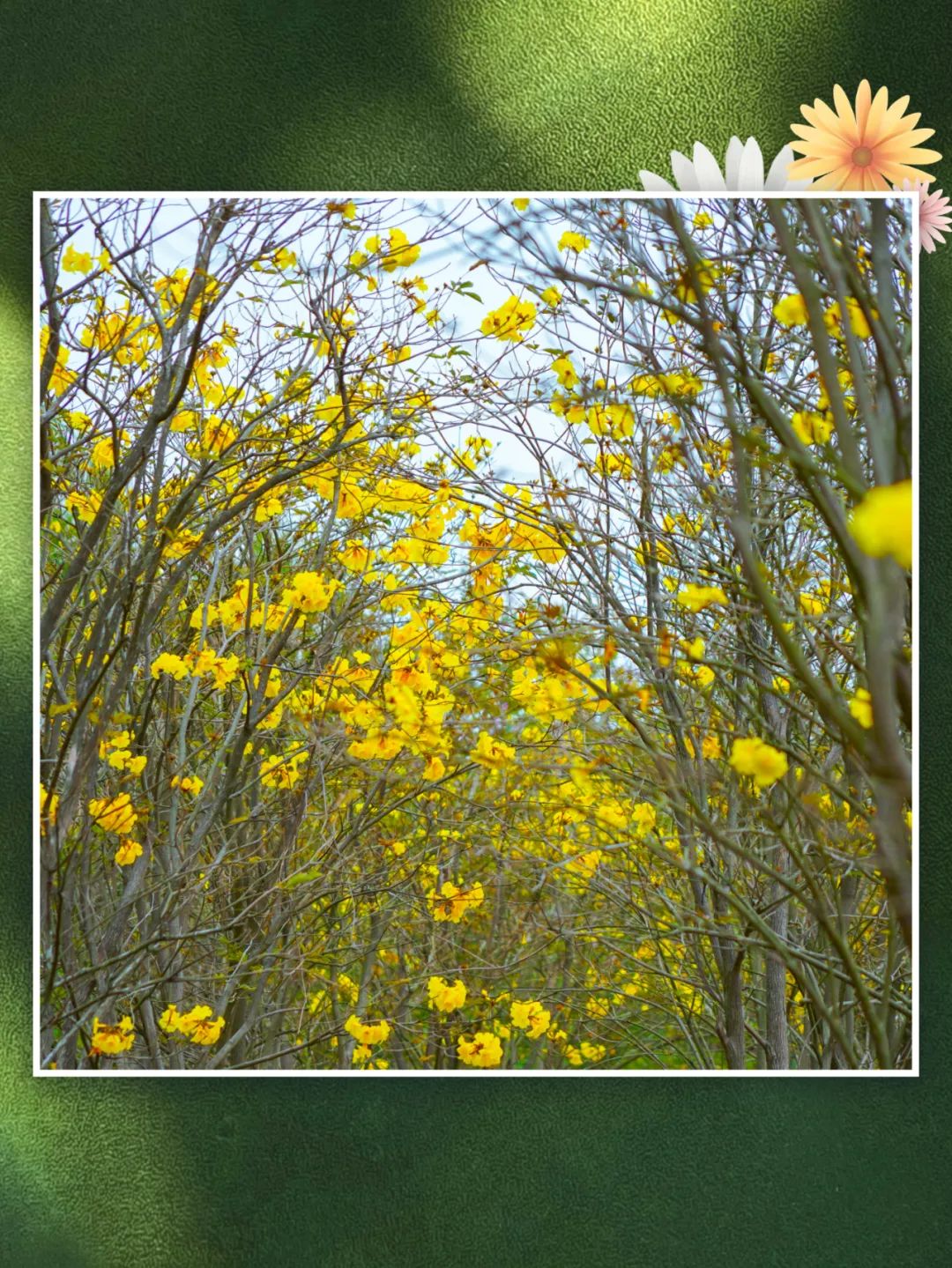 近百棵黃花風(fēng)鈴木,簕杜鵑爬上心形拱門
