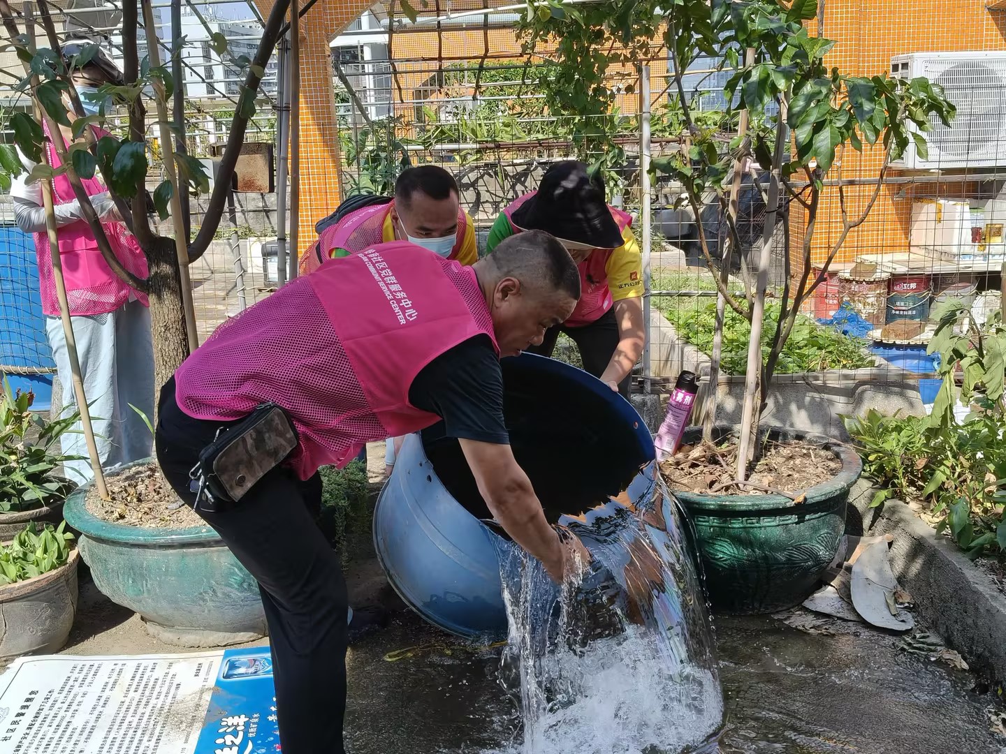 同步,開展“地毯式”環(huán)境整治,推動(dòng)形成 “人人參與、人人盡責(zé)” 的防控氛圍,齊心協(xié)力翻盆倒罐清積水、清理垃圾雜物,集中排查清理社區(qū)綠化帶、下水道等蚊蟲孳生地百余處,切實(shí)降低社區(qū)蚊媒密度,有效提升環(huán)境衛(wèi)生水平。