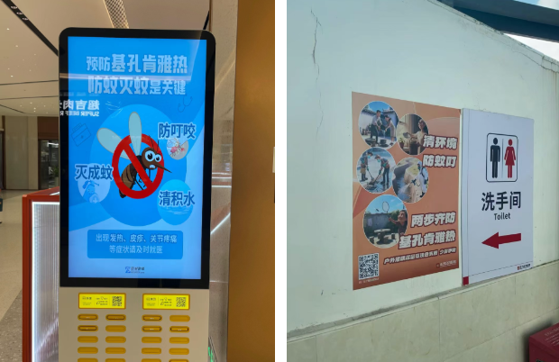 在推進(jìn)環(huán)境整治的同時(shí),正方集團(tuán)積極拓展宣傳渠道,在管養(yǎng)公園、運(yùn)營(yíng)商圈等重點(diǎn)公共場(chǎng)所,通過張貼防蚊標(biāo)語、電子屏滾動(dòng)播放防蚊公益海報(bào)等方式,廣泛宣傳蚊媒傳染病危害與防護(hù)要點(diǎn),普及“清積水、防孳生”等核心知識(shí),切實(shí)增強(qiáng)市民自我防護(hù)意識(shí)和能力。