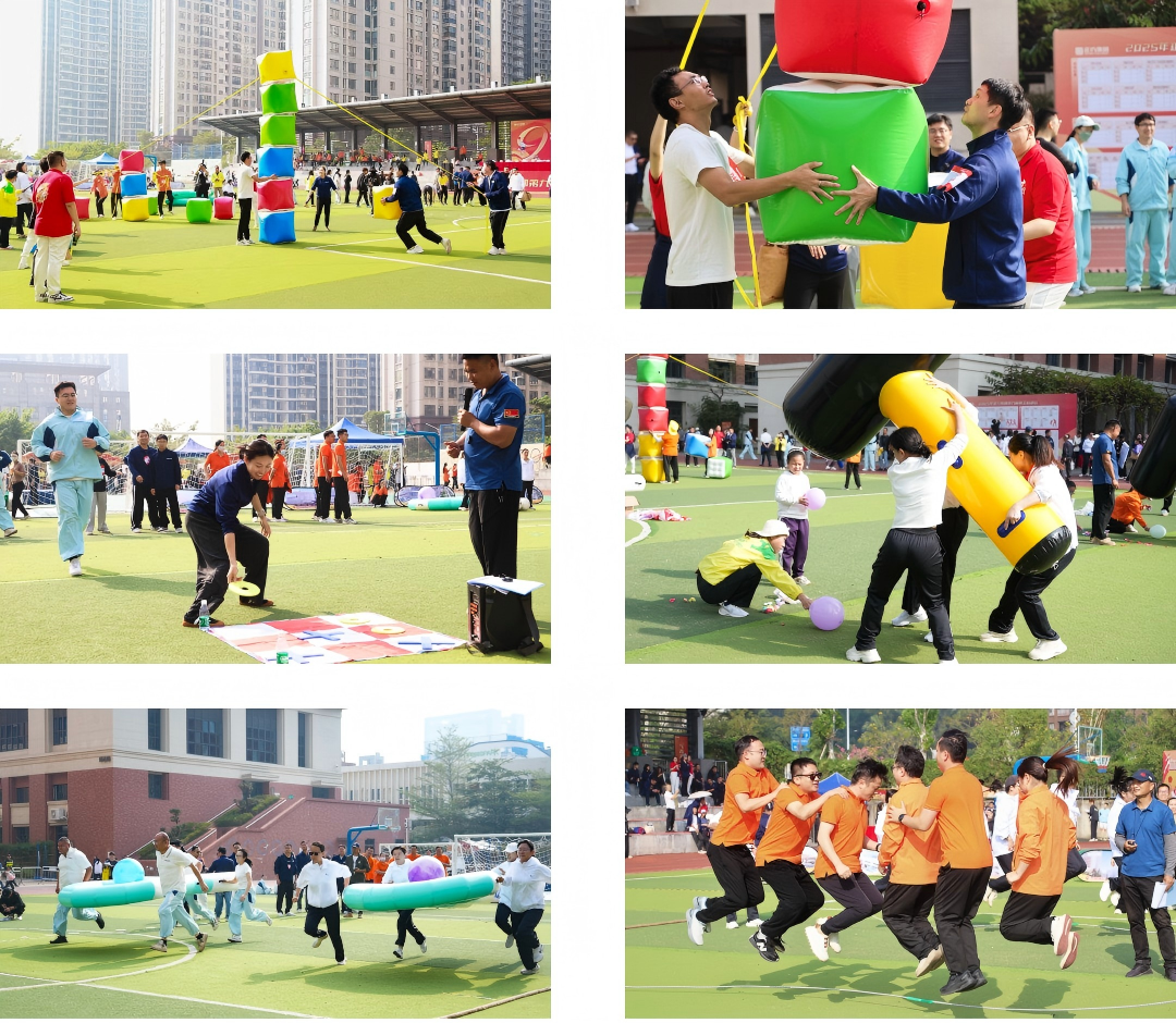 趣味賽場(chǎng)上歡笑聲不斷。跳大繩與“十拿九穩(wěn)”接力運(yùn)球節(jié)奏歡快,最考驗(yàn)團(tuán)隊(duì)默契?!按蠼疱N”砸響歡樂節(jié)拍,“井字棋接力”斗智斗勇,妙趣橫生?!澳芄で山场狈€(wěn)扎穩(wěn)打,疊起合作同贏的“高樓”。